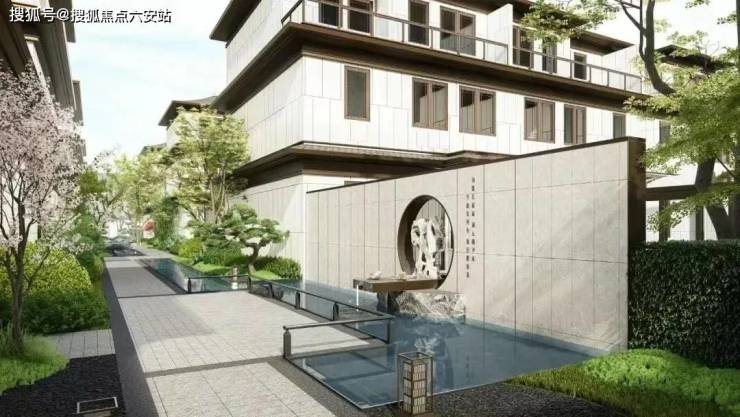 桐乡蓝城紫金府邸总建筑面积约 25 万平方米,涵盖低层合院、多层洋房及少量高层住宅,整体建筑风格采用新中式设计,融合江南民居的灵韵与现代建筑的简约。外立面以浅米色石材搭配深灰色坡屋顶,局部点缀木质格栅与铜制装饰,门窗选用定制实木框架,细节处的雕花、飞檐、栏杆等设计,彰显出中式建筑的典雅与庄重,与社区内的园林景观相映成趣。