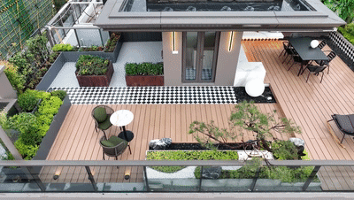 清晨一梦方醒,伺弄一下院中花草,耳边放着舒缓的音乐,累了便往躺椅上一歇,感受清风拂面,带着植物的清香。日落黄昏勾勒出公望山的绝美的风景,女主人可以和闺蜜品尝下小蛋糕,一起做露台瑜伽,或者叫上三五好友齐聚院中,举行一场露台烧烤派对。