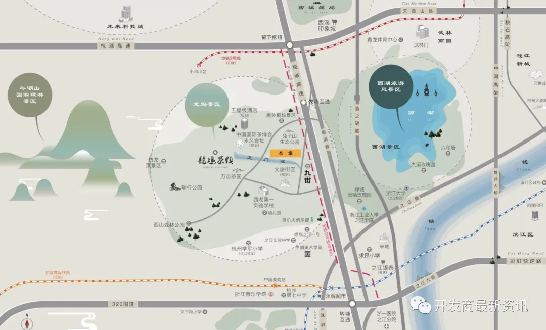 交通:西面绕城高速西线,紫之隧道和之江大桥,规划中地铁四期十二号线龙坞茶镇范围站点。