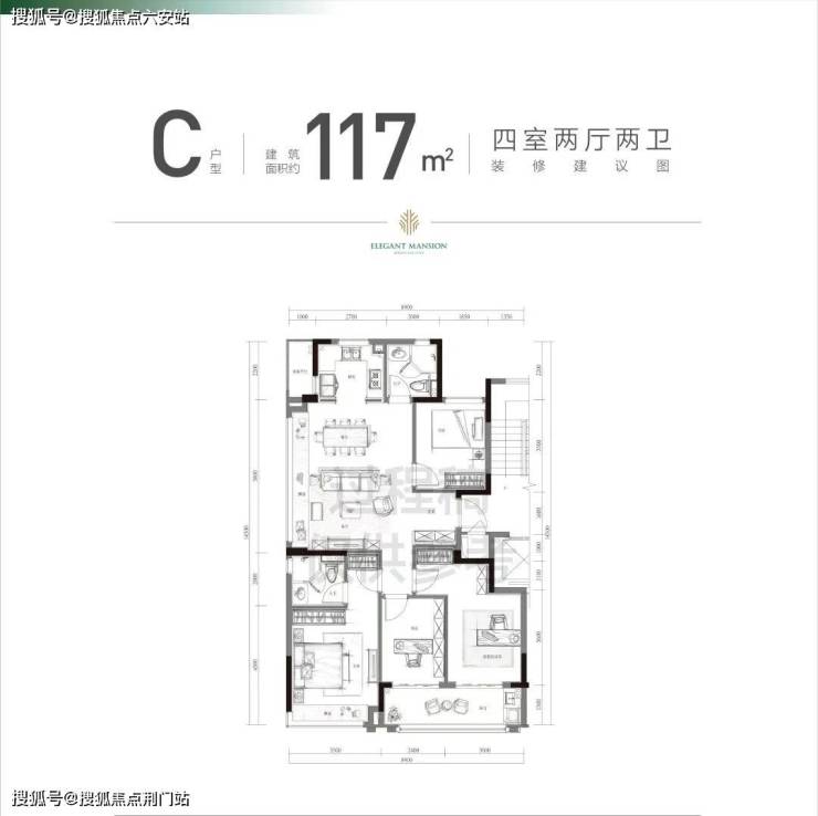 117㎡边套为四室两厅两卫,三开间朝南+南向双开间阳台。在洋房得房率的加持下,套内面积比肩高层建面约130㎡户型。
