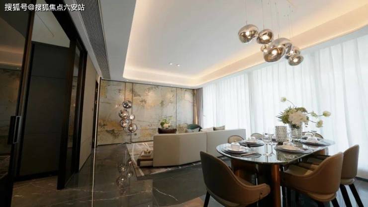第二:整体布局有“仪式感”,现代审美与高级生活呼应。第一眼,近80米超大尺度主入口,以意大利普拉达绿奢石为基座,镶嵌千年罗汉松阵列,形成威严的森系迎宾序列,门庭的恢弘气场扑面而来。