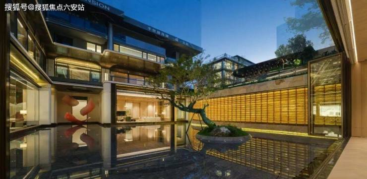 深入“三进院落”,细节处的匠心更显功力:水台外壁的铜钱纹暗喻生活富足,三级台阶的“平步青云”石板衔接内外,藻井天花与潘多拉奢石碰撞出东方雅韵。最动人的是“四水归堂”庭院——以绍兴市花春兰为灵感的2000公斤不锈钢金属门,将鲁迅笔下的“朝花夕拾”铸成艺术装置;乌篷船造型的下沉式庭院,用365块琥珀琉璃砖铺就车行坡道,把“曲水流觞”的雅集精神融入归家动线。