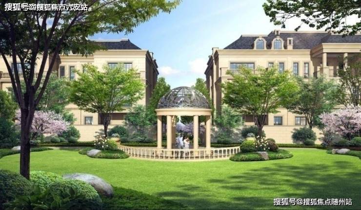 整个园区,以经典的绿城法式墅区景观大中轴贯穿,占地约1000多㎡,联排建筑的设计,融合了中国传统院落布局与法国枫丹白露宫的审美,外立面大面积采用全石材干挂,檐口等细节部位使用仿石。