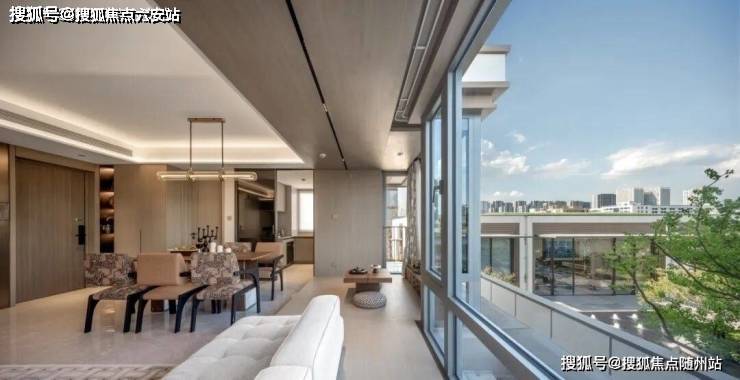 建面约103㎡的边套更是堪称神迹,将小户型的空间魔法玩到了极致。客厅到阳台的地面、天花直接拉通,甚至两侧的墙垛都已隐身,整个餐客厅面积达到约35㎡(含阳台),这可是140㎡以上大宅才有的空间感!