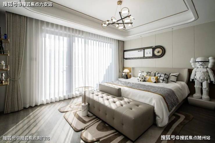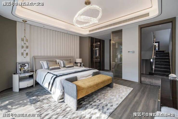项目针对多代家庭需求,创新采用“动静分层+垂直分区”设计:一层为全龄共享空间,配备中西双厨与家庭厅;二层设置双主卧套房,主卧配置270°观景飘窗;三层半打造独立书房与茶室,形成“社交-休憩-私享”三级动线。