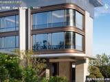 春棠雅韵府深研宋式美学精髓,以“宋韵今形” 为设计理念,将千年风雅注入建筑肌理。歇山顶、三重檐等传统形制经现代工艺重构,勾勒出庄重典雅的建筑轮廓。“金镶玉”立面以金属线条与大面积玻璃幕墙相呼应,既保留东方建筑的礼制美感,又赋予现代人居的通透质感。
