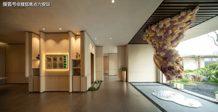旅程始于一场震撼的归家仪式。近40米长的超星级酒店式主入口,以天然普拉达绿奢石作为基调,其翠绿通透的质感,奠定了归家的第一重尊崇感。雕塑与叠级水景的精心处理,柔化了建筑的硬朗,让归心在潺潺水声中沉淀。