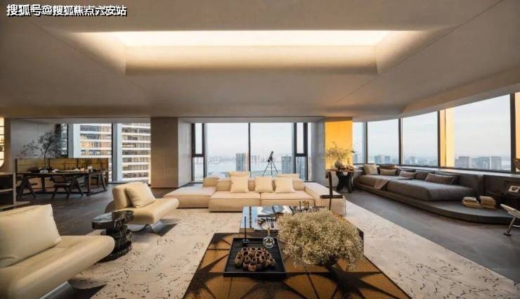 约21米的横向面宽瞬间撑开了城市画框,钱塘江景得以毫无保留的尽情展示,约180方的会客空间则是业主能够自行定义的海绵空间,足够根据其喜好任意布置。