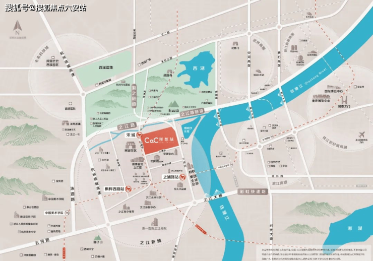 东钱塘江;南之江板块金融,行政,文化中心;西宋城,银泰百货之江店;北五云山,九溪玫瑰园。