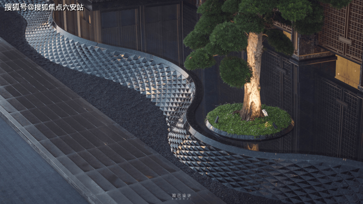 门前格栅雅致,光影错落间,叠水正潺潺流动。龙鳞水景以整石精工打造,每一块石材皆经匠人悉心雕琢,形态仿似神龙于云间翱翔,龙身蜿蜒舒展,龙爪若隐若现,似在云霭里腾挪辗转。