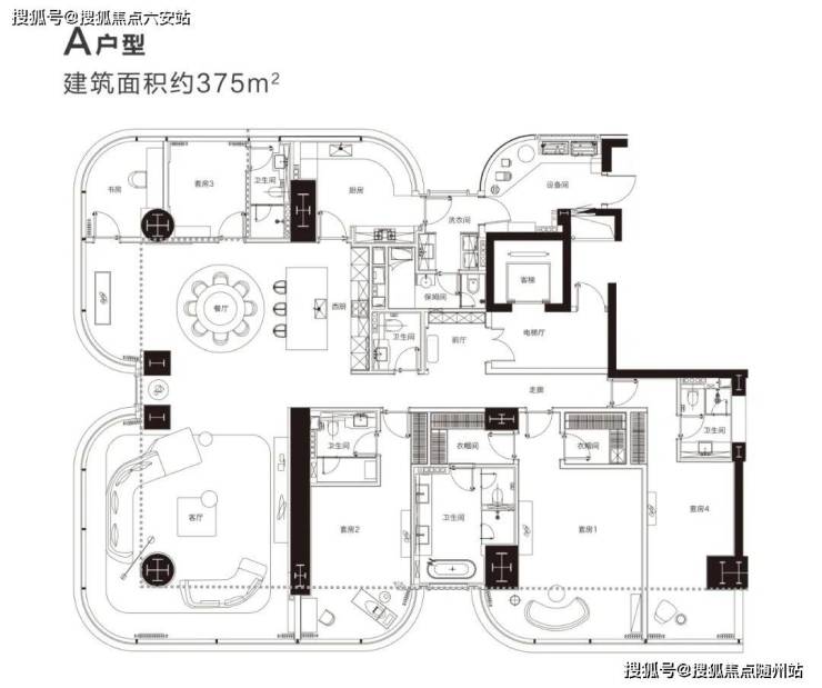 🛑375方大平层,4+2房户型合理🌈建面约375㎡+赠送100㎡ 93%得房率