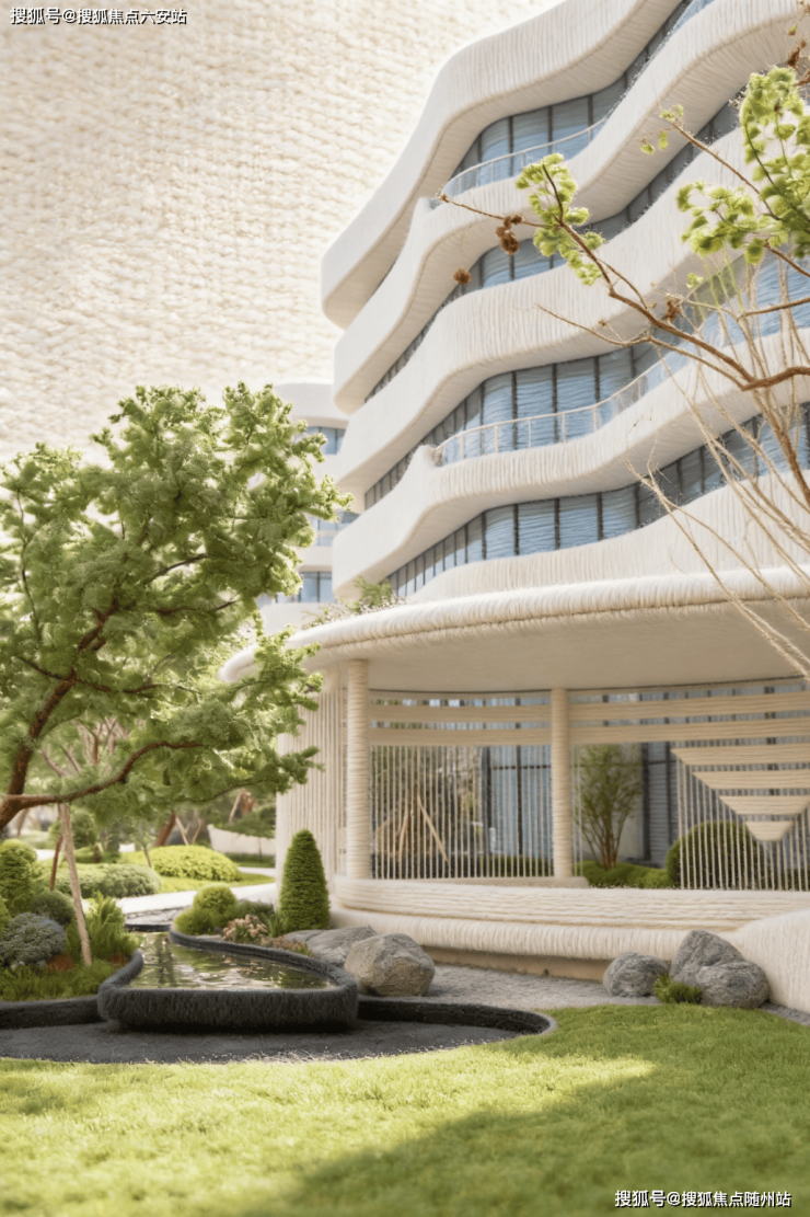 建筑采用包豪斯金奖“湾流曲线”立面,白色流线型设计与垂直绿化的结合,兼具科技感与自然融合。
