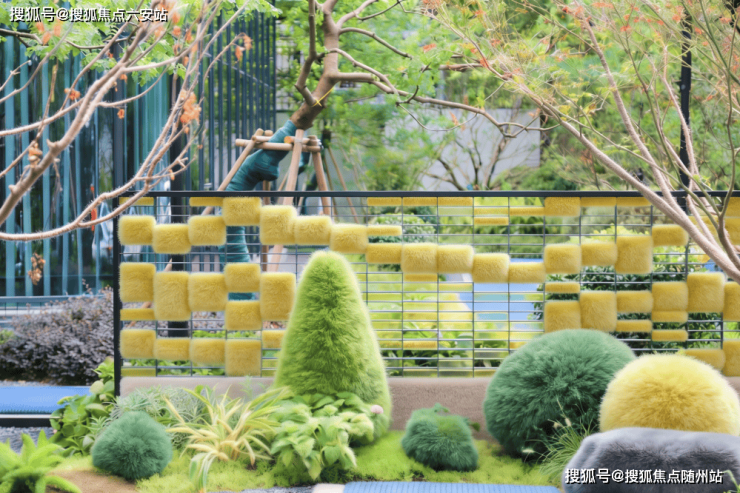 外立面上空中绿篱如织如绒,随季节悄然变色,