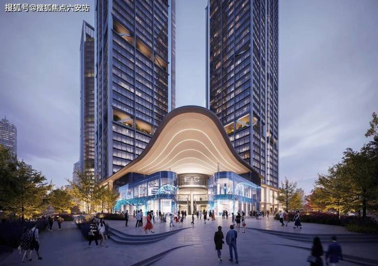 它采用雨棚悬挑的设计语言,构筑显著的入口标志,最大的梦露裙摆式流线一体悬挑大雨棚,面积大到停下18辆劳斯莱斯,挑战反重力极限。国内罕见的汽车开入建筑内的殿堂迎宾级落客区设计,约40米直径的多车道同心圆落客空间,构起国宾级礼遇,通体采光的规划,尽情满足人们向阳的天性。