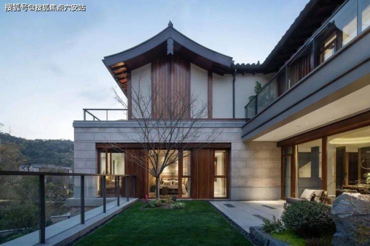 在建筑营造上,由GAD张微老师执笔,延续和家园“章法天成,自然而然”理念,玺园二期合院取法宋代郭熙的“三远论”,结合正脊、戗脊、博风板、悬鱼、鱼鳞瓦等经典中式元素,并巧妙运用石材、玻璃、铝板等材质,诠释中式建筑的虚实相生,平远雅致,带来丰富的视觉体验。