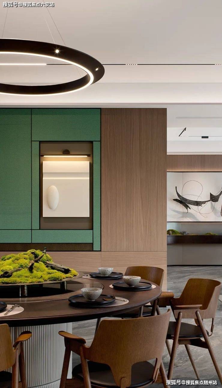 最后是精奢于心的优雅空间,例如由琚宾设计的杭州首个宋韵作品「SONG370」,提取经典名画《西湖全景图》中的丹青意蕴,运用风景开阖、空间对比等传统设计手法,从青玉横幅背景墙到金缕编织墙面