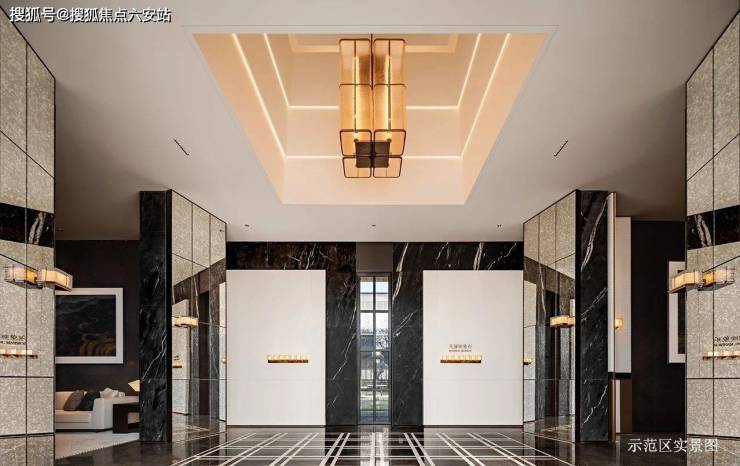 经典黑白金配色,深邃雅致;太古青金石材、北京瑰丽酒店同款奢华吊灯,宁波特色水波纹壁灯、大师艺术品,流光辉映,尊贵雅致。