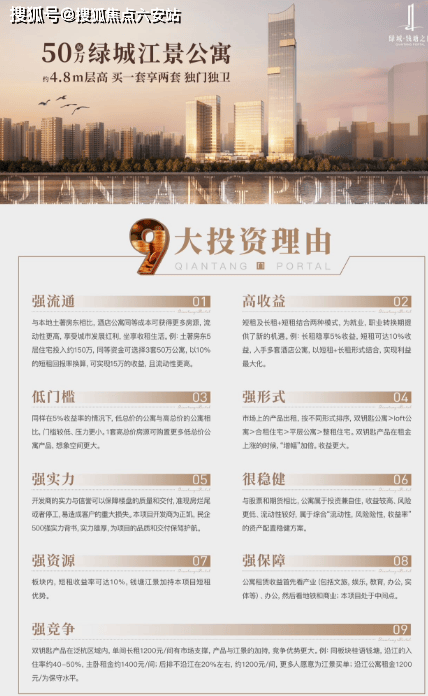 对买房人来说,资产“稳”才是硬道理,钱塘之门的抗跌属性体现在三重保障:其一,绿城国企背景兜底,避免小开发商“暴雷”风险,房屋品质与产权更有保障;其二,一线江景资源不可复制,海宁钱塘江北岸已停止新增住宅用地,项目成为板块内少有的江景现房,稀缺性决定长期价值;其三,租金回报可观,45㎡公寓月租金可达2500-3000元,75㎡两室租金超4000元,租金回报率稳定在4%以上,远超普通住宅。