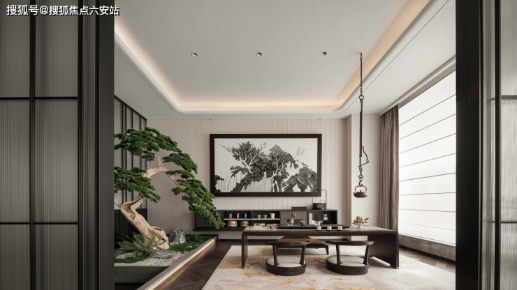 撇与捺的笔触、简与奢的对比、黑与白的韵律、近与远的层次,在室内设计中完美融合。书法笔触的墙面、江南色调的软装,让每一寸空间都散发着东方美学的温度,区别于市场单一的建筑形象。