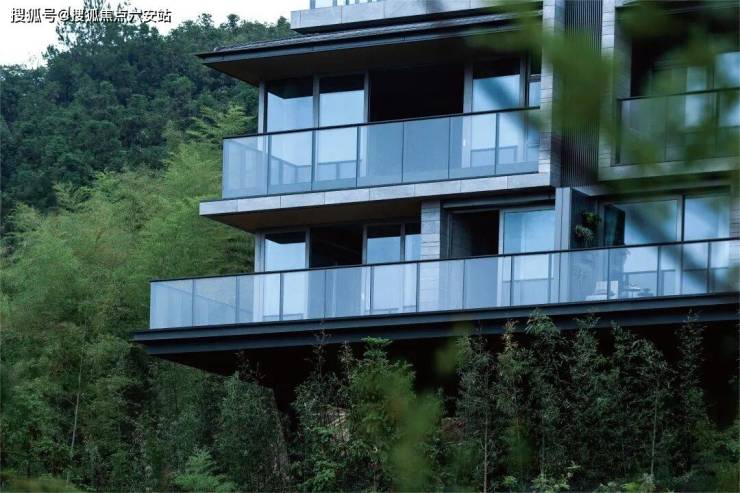 💎设计:玻璃幕墙+铝板立面,270°环景露台,建筑消隐于杉林溪涧
