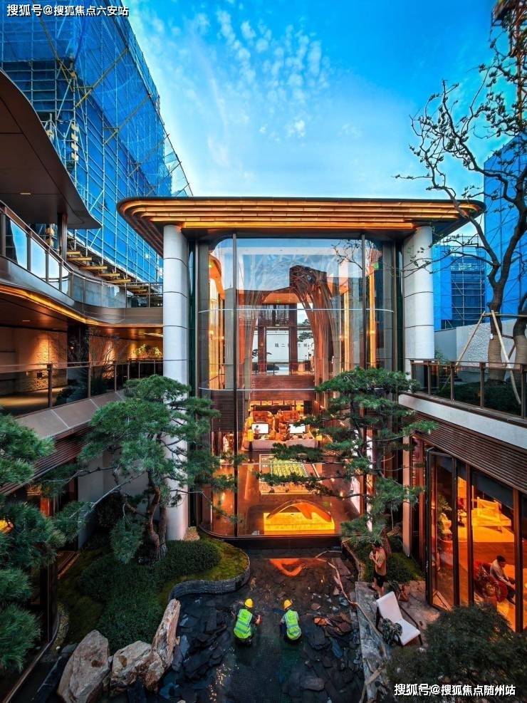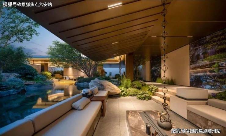 以水、风雨连廊、空中悬挑平台串联起的山水相依风雅景致,15米飞石叠瀑景观的壮丽,大面积立体水的灵动,共同营造出丰富的空间层次感,让每一次漫步都仿佛置身于一幅流动的山水画卷之中,让生活与自然和谐相融。