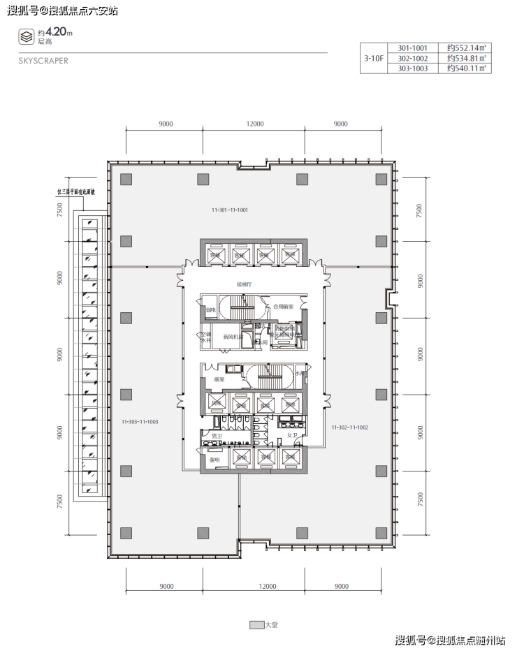 约9米挑高大堂,顶楼6米挑高