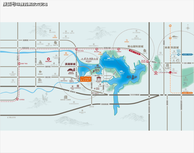 PART 02:配套价值交通配套 | 全维路网 交通迅达 高速(杭徽高速)高速口驾车 2 公里(5 分钟),杭州车牌 ETC 至老余杭、留下免费;30 分钟可至未来科技城核心 地铁16号线(农林大学站)距离 2 公里,9 站(30 分钟)可至未来科技城核心绿汀路站 快速路(文一西路西延-科技大道)文一西路西延一期工程已全线打通,预计 2024 年中旬完成施工。最后的三期工程预计在 2027 年建设完成,届时到未来科技 城通勤时长将进一步缩短。 内联(吴山街-钱王街/钱锦大道) 吴山街-钱王街/钱锦大道可快速内街临安锦城各个街道,快速串通与未来科技城快速路/高速的连接功能配套 | 湖山之间 贵隐繁华 商业配套——约 500 米内滨湖天地商业综合体、启迪冰雪荣耀之城滨湖天地综合体(126 万方综合体,其中商业近 50 万方,预计 2024 年开业)