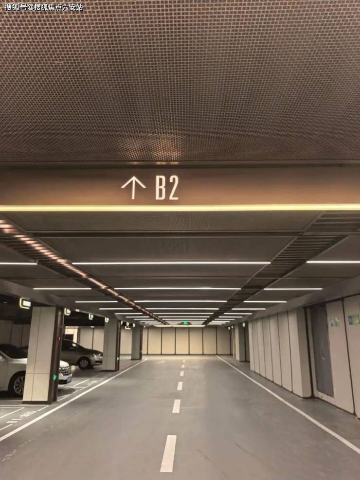地下车库作为检验豪宅标准新的试金石,当然也是卷出了新的高度。玫瑰金的铝板覆盖整个地下车库的吊顶,完全没有顶部管道的裸露。车库出入口两侧也用的是全石材铺贴、坡道地面也用的是全石材的马蹄石。当然除了堆料之外,部分细节也做的还不错,例如双框车位线、做了造型的的背景墙、发光的车位牌等等。