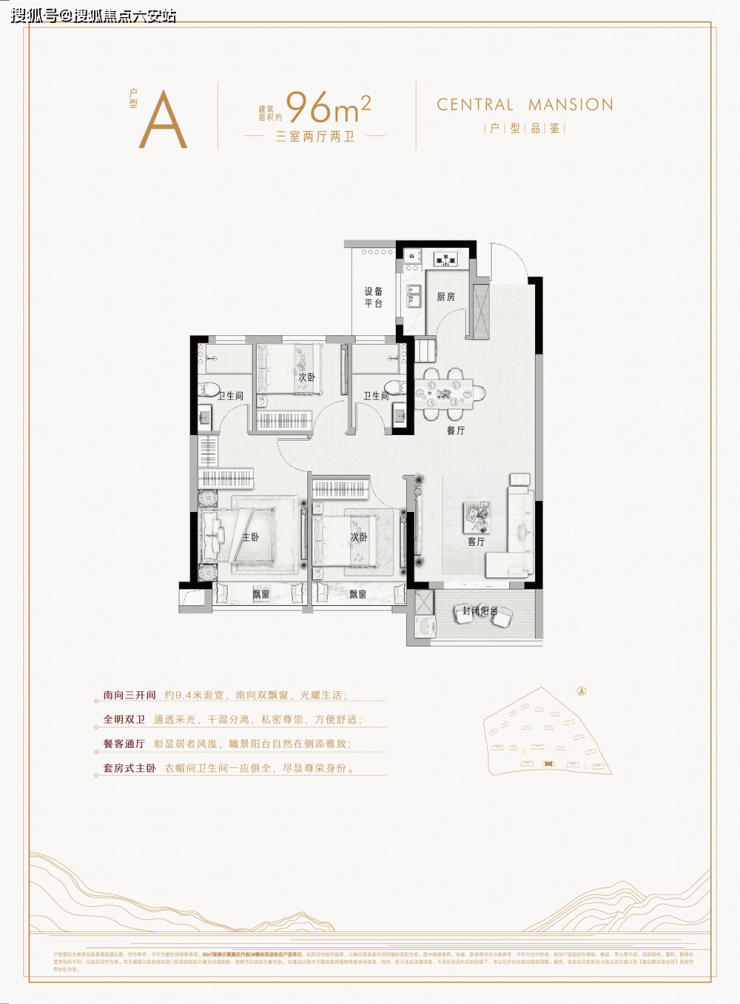 户型方正,三开间朝南,餐客通厅、套房式主卧,逾6米宽通联阳台,延绵生活志趣。