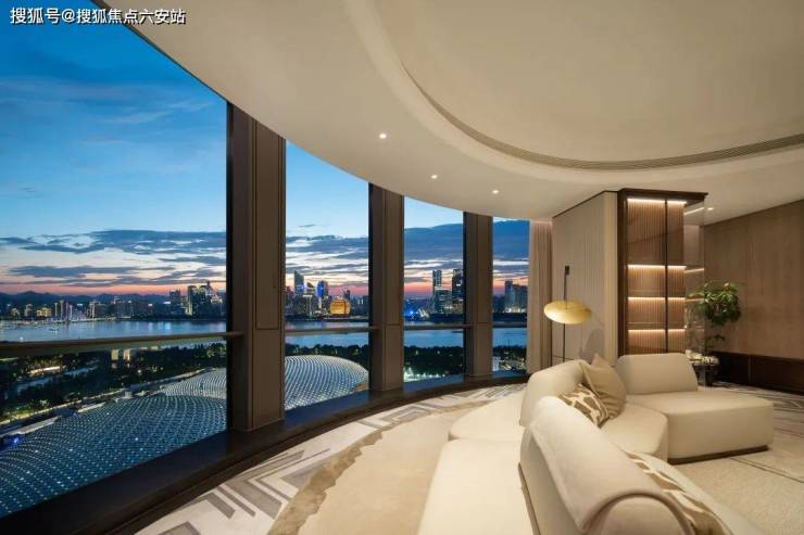 黄昏是它一天中最美的时刻,沐浴在夕阳里,江面映成橘红色的海洋,此时室内外的景观已经没有明确的界限,二者融为一体,这里是“杭州中轴”独有视野。什么叫稀缺资源占有,这就是全杭州不可复制的稀缺资源占有。