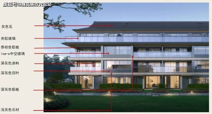 四面铝板+三层lowe玻璃立面, 搭配进口爱马仕灰和蓝眼睛石材,与坡屋顶的结合,沿袭传统宋式山水美学,写意现代东方气韵风华,三进二庭五园的中式传统轴线布局,两轴九景四时的极致意境生活。景观与空间相互渗透交融,行走至其间形成视觉上的联系与流动感,步移景异, 悠闲和缓。