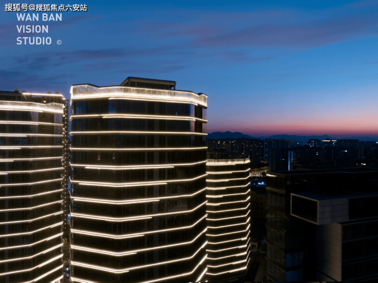 建筑设计取自曼哈顿Summit大楼,在4栋高楼上进行了与众不同的处理:两侧内凹成六边形剖面,六个弧形转角被打造成美丽的圆弧玻璃幕墙,使得采光效果达到了极致。