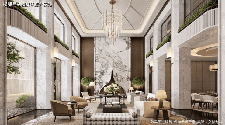 容积率仅1.1(A/B地块),规划4层排屋、6层叠墅及8-18层洋房/小高层,形成“别墅+洋房+高层”复合社区。建筑采用禅境中式风格,复刻西湖郭庄造园手法,下沉式庭院、游廊水榭与百年古树(如300年日本茶梅)营造诗意栖居。