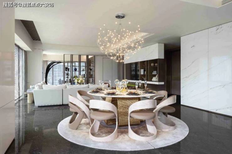 约700㎡空间中规划出的社交空间(3厅,可理解为核心客厅、餐厅、多功能厅或家庭厅)必然气势恢宏。阔绰的尺度足以举办数十人的高层级私人酒会、艺术沙龙或家族庆典。设计师通过精妙的空间布局与氛围营造手法,结合顶级灯光、影音设备预留条件,打造出极具仪式感和艺术感的社交主场。这里是主人品味、地位与圈层社交能量的最佳展示舞台,既能承载隆重典雅的待客之道,也能为家人营造其乐融融的共聚时光,成就名士风范的云端会客厅。