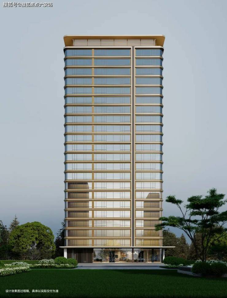 主入口的封面感十足,超30米的大尺度门廊,铺满了贝金米黄花岗岩。约5.5米的挑空高厅内,水纹玻璃砖墙加上古铜金属装饰,让精贵典雅一路延伸。外立面底部为石材,以上则是四面铝板,并搭配了金属格栅勾勒。