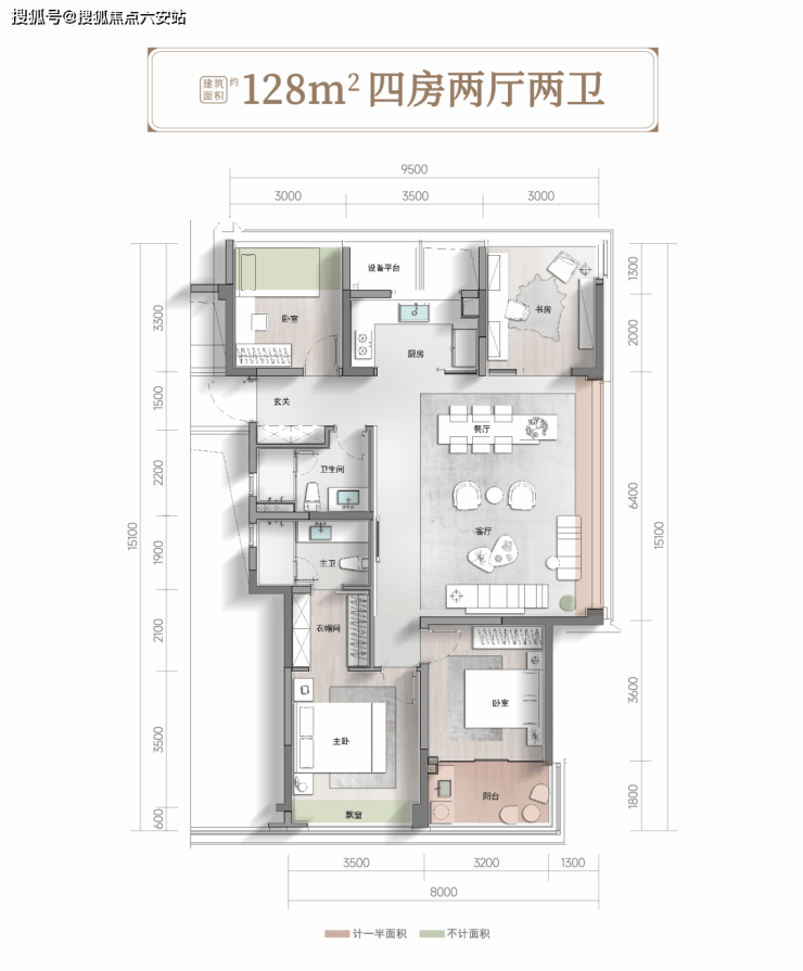 户型在功能布局上更见功力,南向主卧带走入衣帽间,南向次卧带270°采光与观景视野阳台,甚至北向两个房间开间均达约3米,通常这些是很多在售140㎡以上户型才有的房间尺度感。这款128㎡户型,在整个项目内总共也不超过50席,本次加推仅16席。