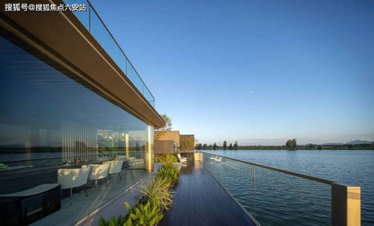 建筑设计更见匠心:以现代极简的流光曲线为语言,摒弃传统别墅的厚重感,用金属线条与大面积玻璃,勾勒出轻盈、通透的建筑立面。白天,阳光穿透玻璃洒入室内;夜晚,灯光倒映湖面,建筑与自然融为一体,宛如“生长在湖边的艺术品”。