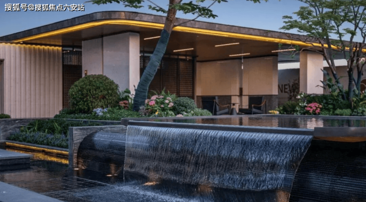 小区内还打造了多处水景,动静结合,有静水、叠水和水幕等。项目借鉴苏州四季入口处的流水影壁,以现代化手法融入,通过叠石流水赋予景观生命力。这种对传统园林艺术的现代诠释,增强了社区的艺术氛围与文化底蕴。