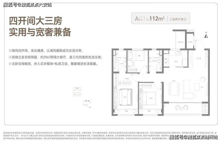 **建面约125㎡**:270°三面采光,双卧朝南+奢阔客餐厅,一步到位改善需求。
