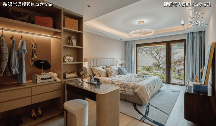 三开间朝南,大面积的落地窗,坐在阔绰的卧室内,也能闲看庭院外云卷云舒,花开花落!