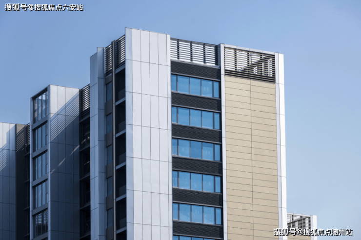 四面铝板+玻璃幕墙:外立面采用深灰、米色多色铝板拼接,搭配蓝色竖向金属线条,造价追加近千万打造“机翼型”圆弧隔档,私密性与辨识度兼具。