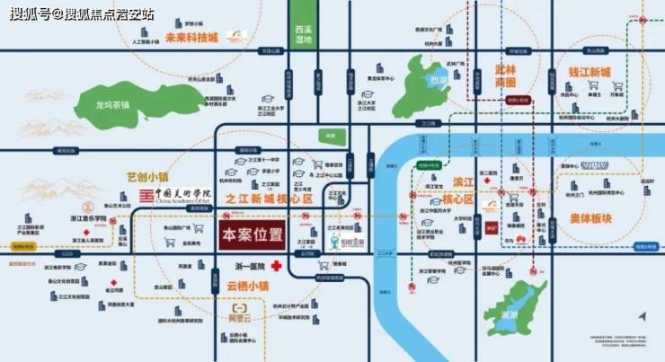 该片区兼具生态与人文双重优势,东临钱塘江生态廊道,西接自然山体景观,形成独特的滨水城市界面。作为杭州城市西进战略的重要节点,区域通过整合文化设施、生态景观、运动休闲等复合功能,构建起现代都市生活典范。其价值体现在产城融合示范效应与优质人居环境双重维度,已成为城市新兴发展极核。