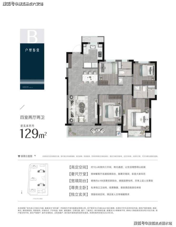 建面约129㎡/139㎡四房:面向多代同堂或品质改善,南向面宽大,主卧套房设计私密尊崇,LDKG一体化餐客厨空间开阔,聚会、亲子互动皆从容。