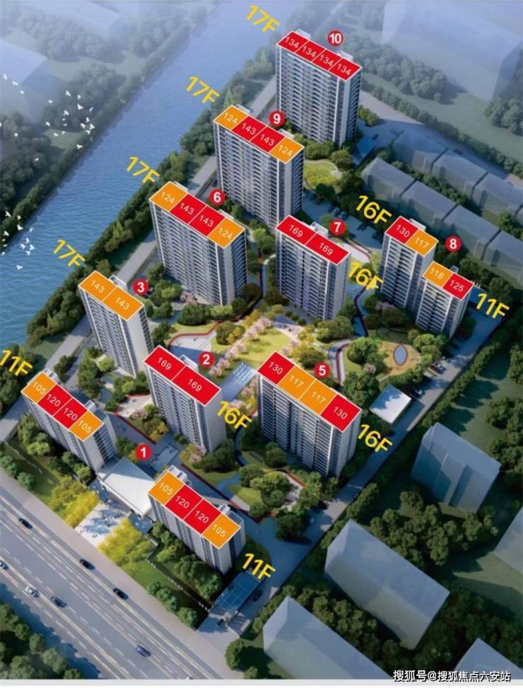 项目层高:1#楼11层;3#、6#、9#、10#楼17层;2#、5#、7#楼16层;8#楼东边单元11层和西边单元16层