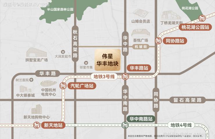 项目距离已运营的地铁3号线华丰路站D口仅约190米,规划中的6号线北延段也在侧,构成“双地铁口”格局。