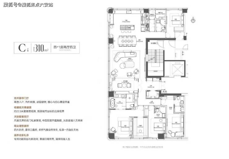 云端社交场:60㎡南向露台可改造酒吧/花园,匹配塔尖圈层需求。