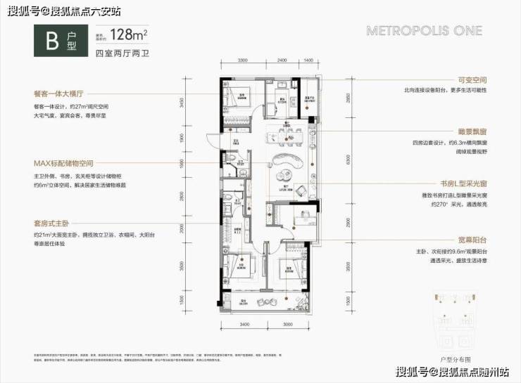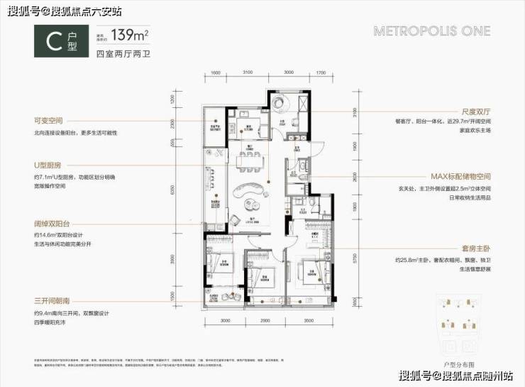 - **建面110㎡三房**:动静分区+南向三开间+6.5米大阳台,主卧套房设计;