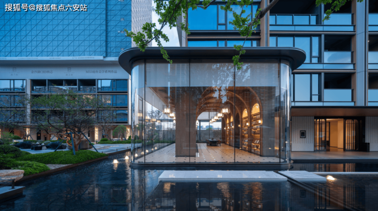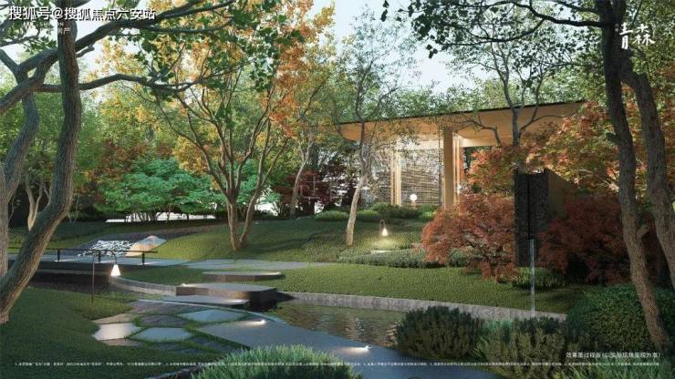 有藏着溪流、卧桥、玻璃冥想亭的“森林溪境”,有很像瑞士沃德山庄的“萃谷望泉”。有“人、林、石”三位一体的“砚山雅筑”,也有浓荫夹道的玄关花园……整座园林还以约百米的风雨连廊串联,缀入了四大森系会所:浮岛会客、“24小时书吧”、健身房、童趣冒险天地。