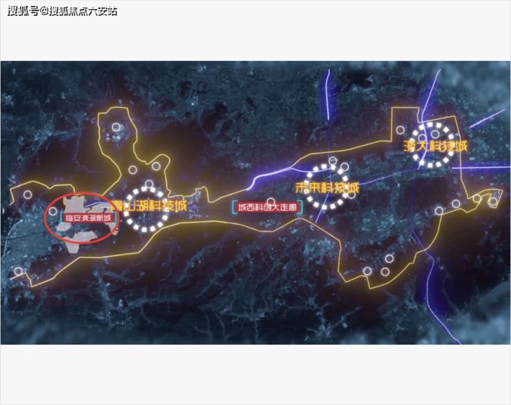 城西科创大走廊西至浙江农林大学,北至西湖区灯彩街、杭长高速公路、临安区中苕溪一线,总面积约 390 平方公里。 核心构成:一廊四城两翼,“一廊”是东西科创主廊道,核心是“四城”:紫金港科技城、未来科技城、云城、青山湖科技 城,“南翼”向之江延伸。 临安以青山湖科技城产业平台为核心融杭发展,到链接西部建设於潜工业功能区,临安自东向西规划的"1+3"产业主平台和 “六大园”,包括青山湖科技城核心区(青山+横畈区块)、高新技术产业园(金马-高虹产业区)、玲珑工业功能区(玲珑-锦南 产业区)以及於潜工业功能区,将原有产业平台优化提升,科学运用存量资源,用以规划未来发展空间。其中作为临安“六 大产业园”之一的鲲鹏产业园,此前拟选址于滨湖新城长桥区块,目标是打造楼宇经济新标杆、城市形象新地标,距离本案 仅 1.5 公里!