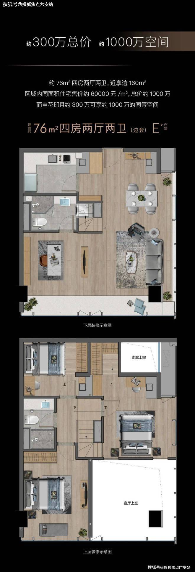 而约38-76㎡的产品构造上的应用,更将独特的几何审美诠释得淋漓尽致。在房产开发新政下,按最小单元分割的产品空间,可以更低总价实现买一层,送一层。周边高端产业、大型企业汇聚,也奠定了高租售市场的前景需求。